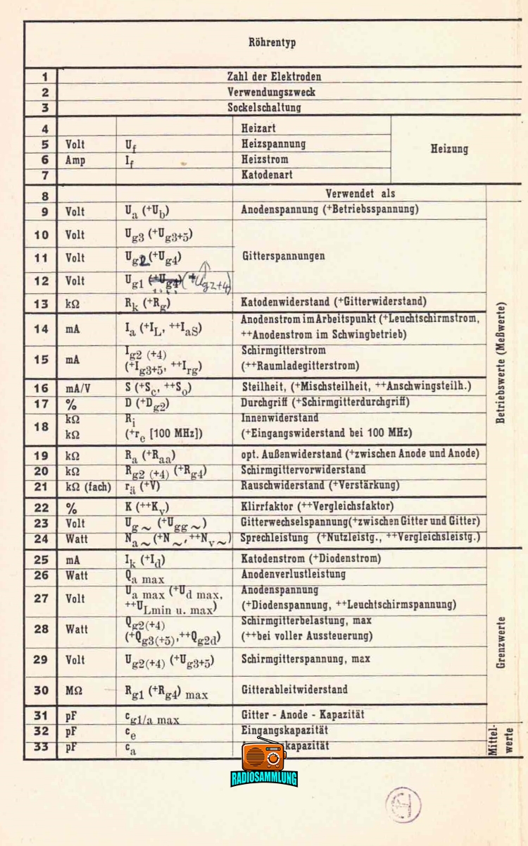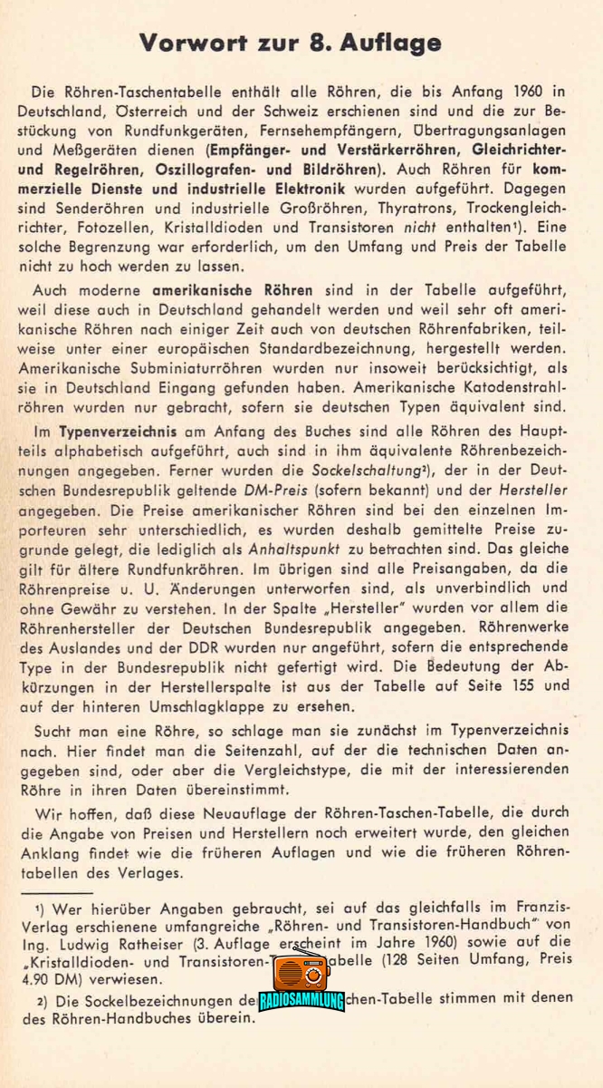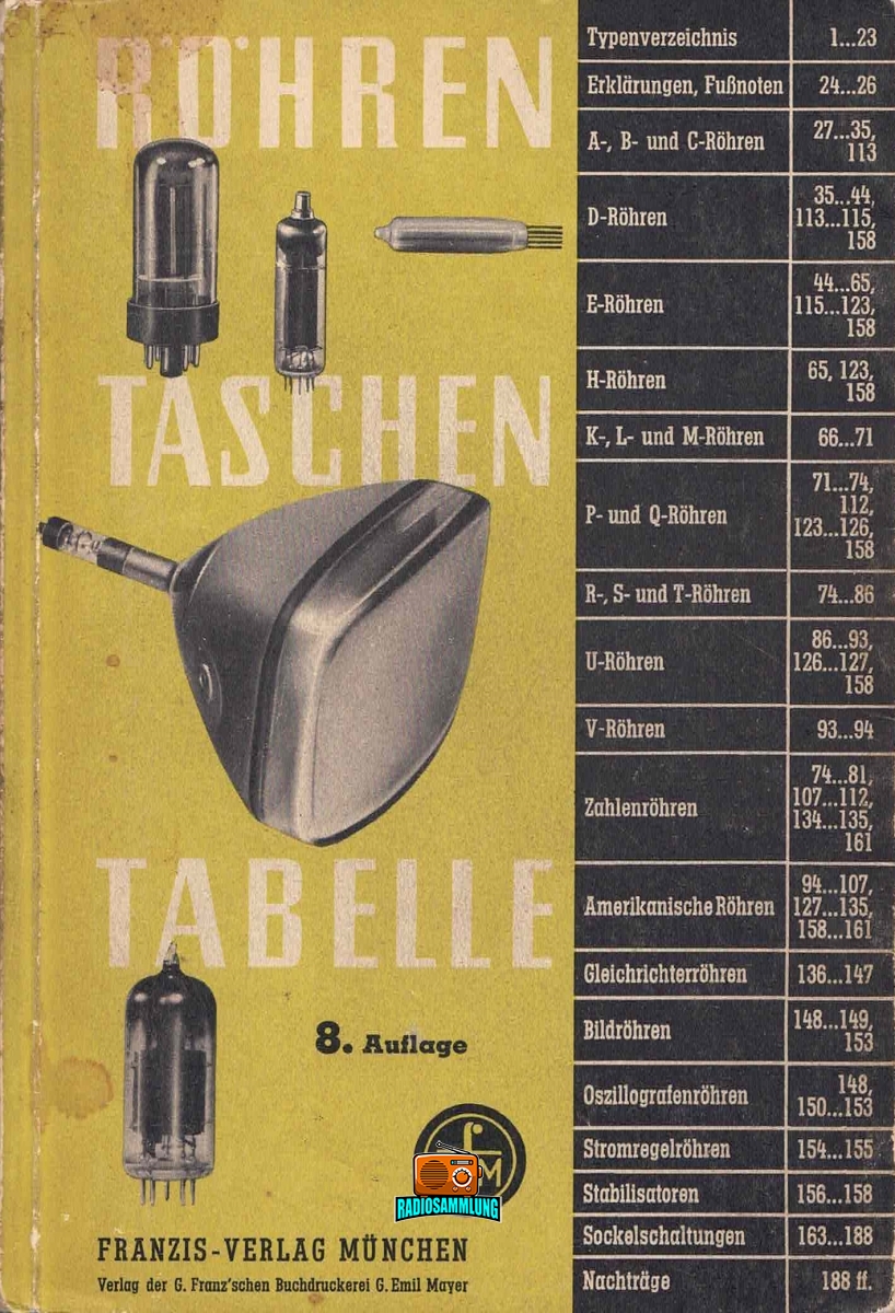 RÖHREN TASCHEN TABELLE – 8. Auflage – 1960