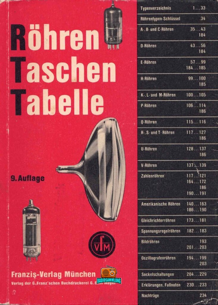RÖHREN TASCHEN TABELLE – 8. Auflage – 1960